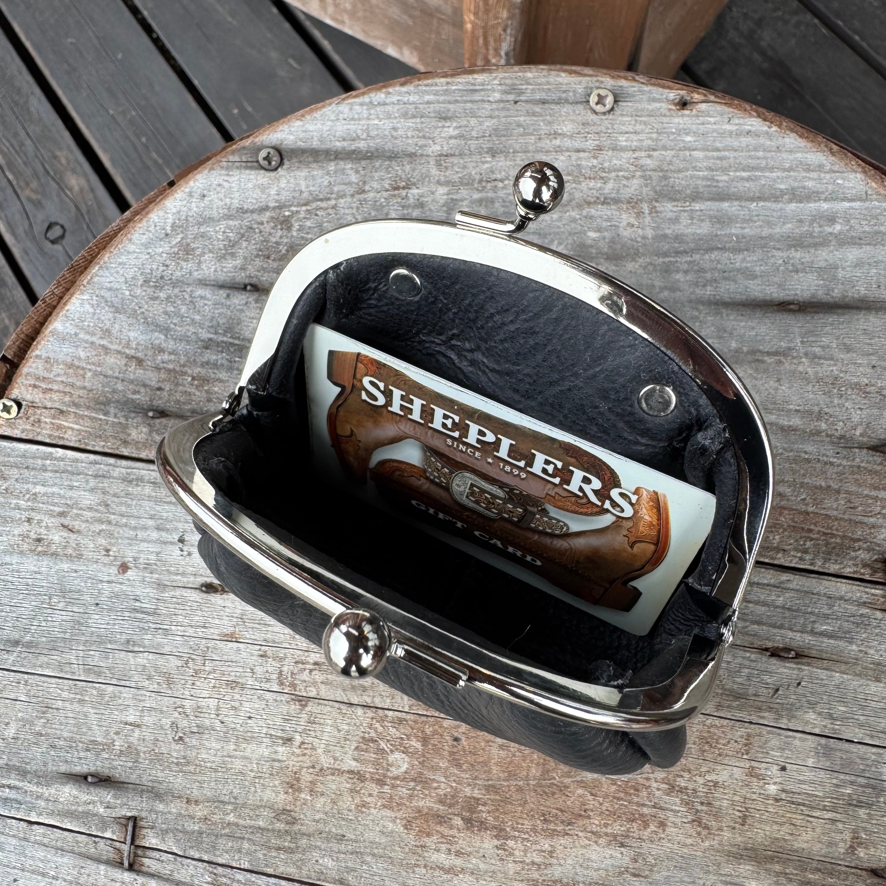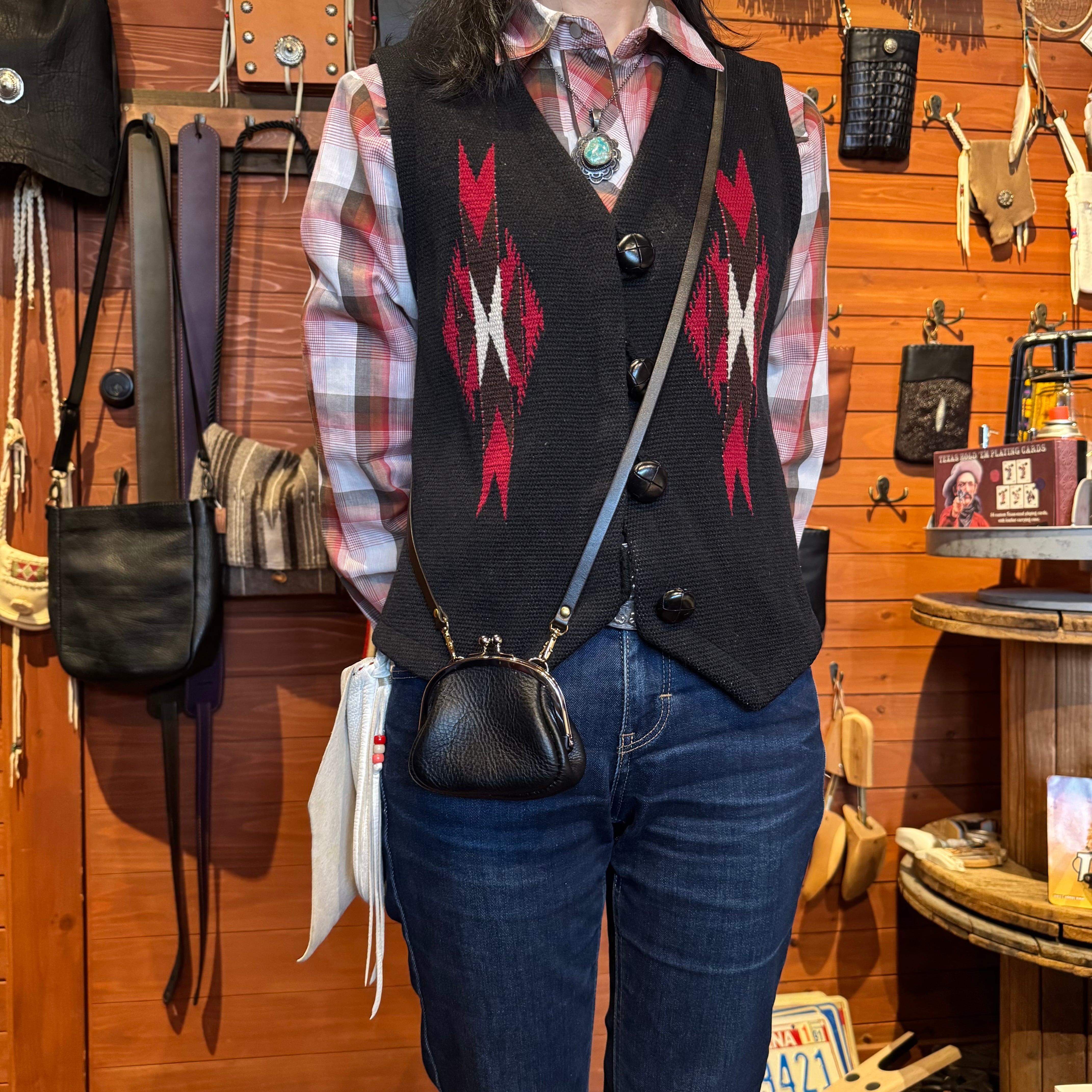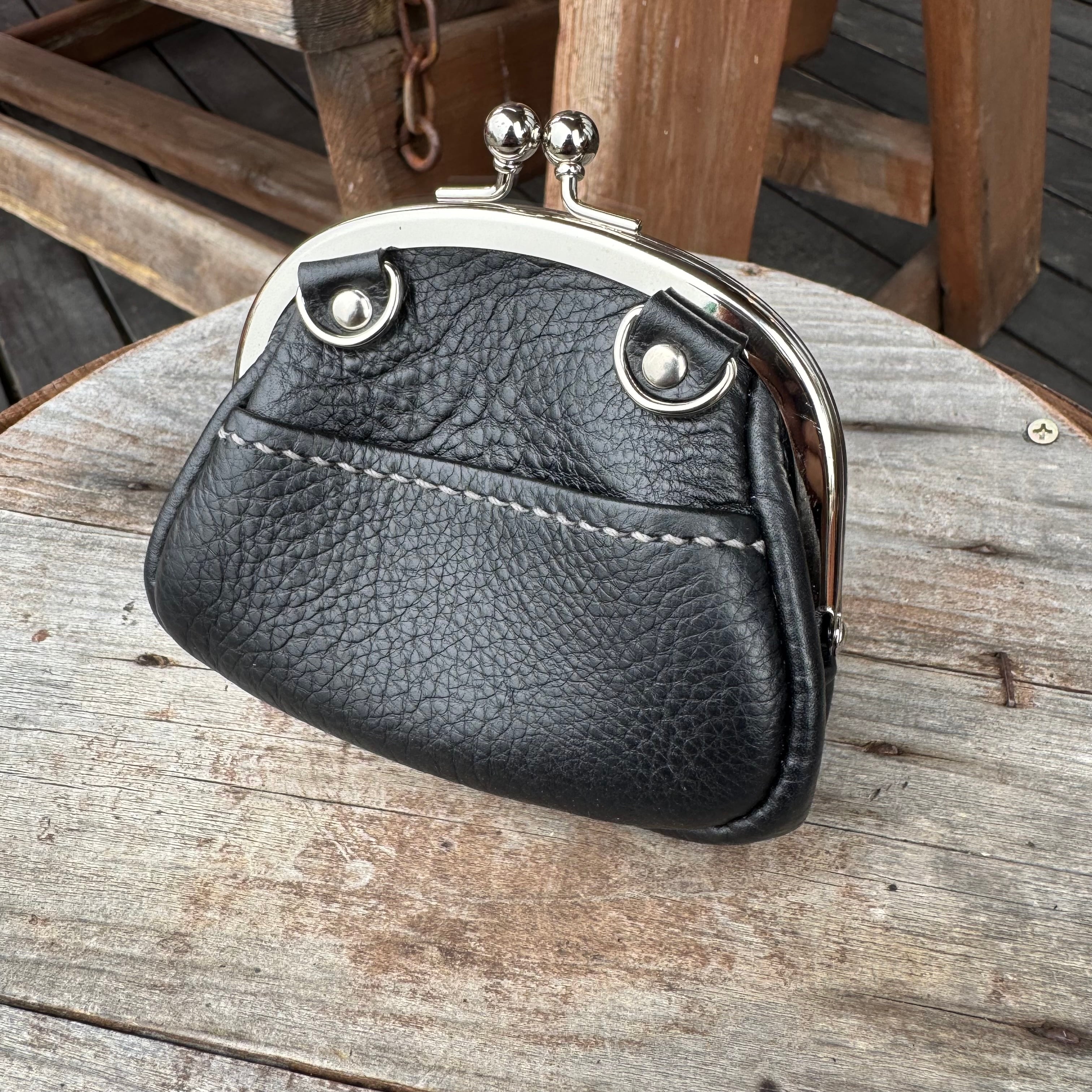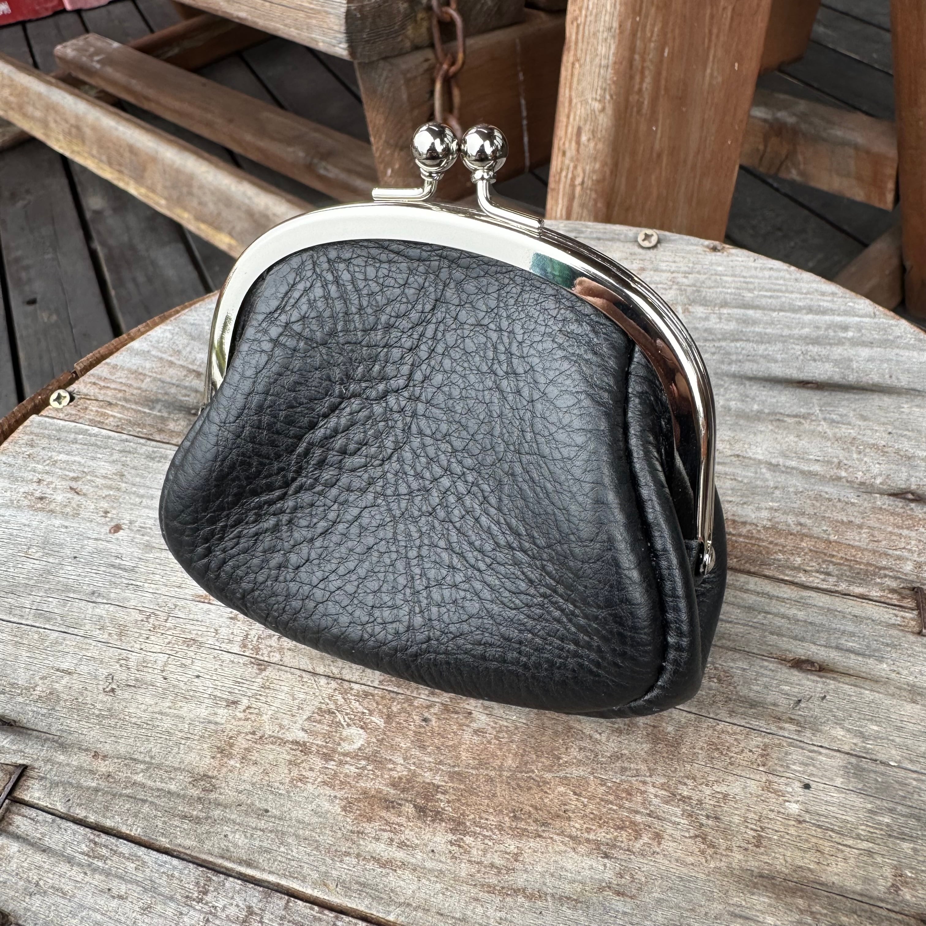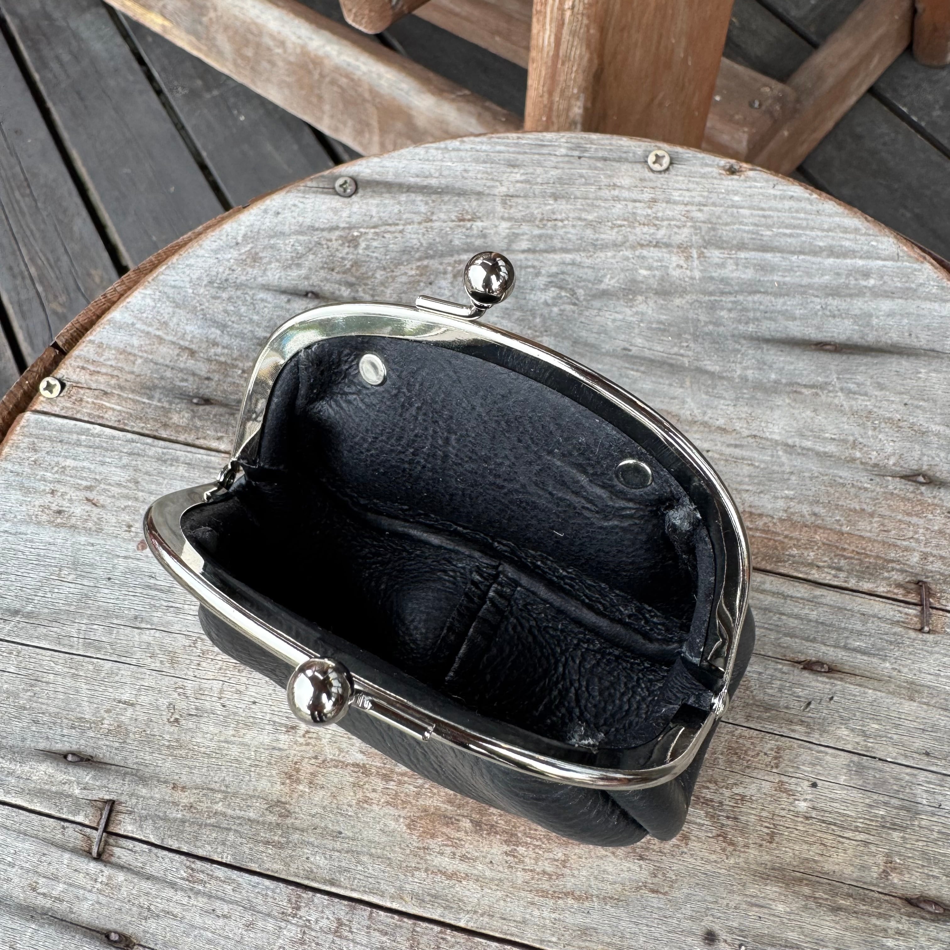 WHOLオリジナル がま口コインケース アリゾナレザー ハンドメイド 財布 手縫い 本革 ブラック