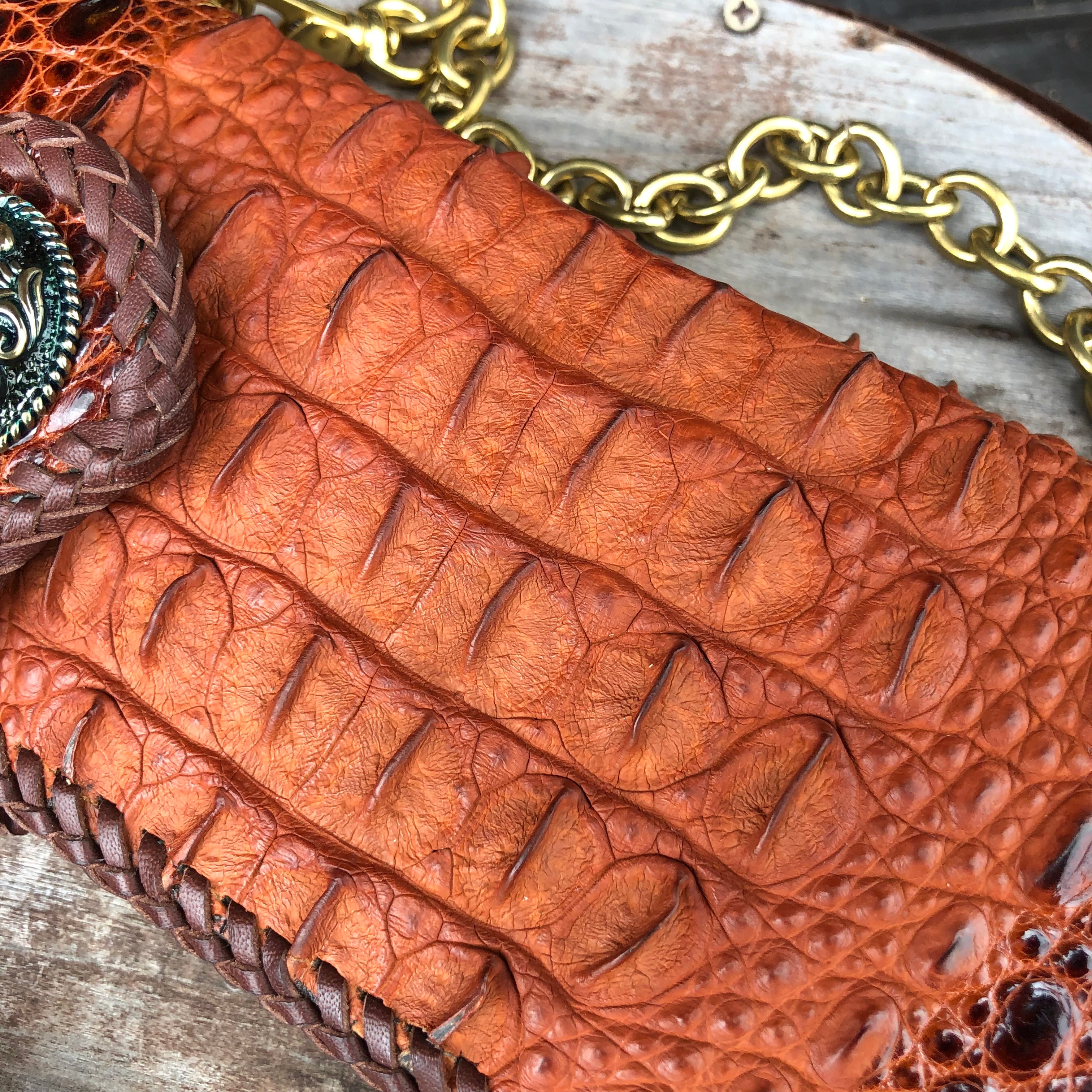 WHOLオリジナル シャムクロコダイルウォレット(キーホルダー、ウォレットチェーンー別売り) ハンドメイド 財布 本革 手縫い 牛革 長財布 レザーウォレット ワニ