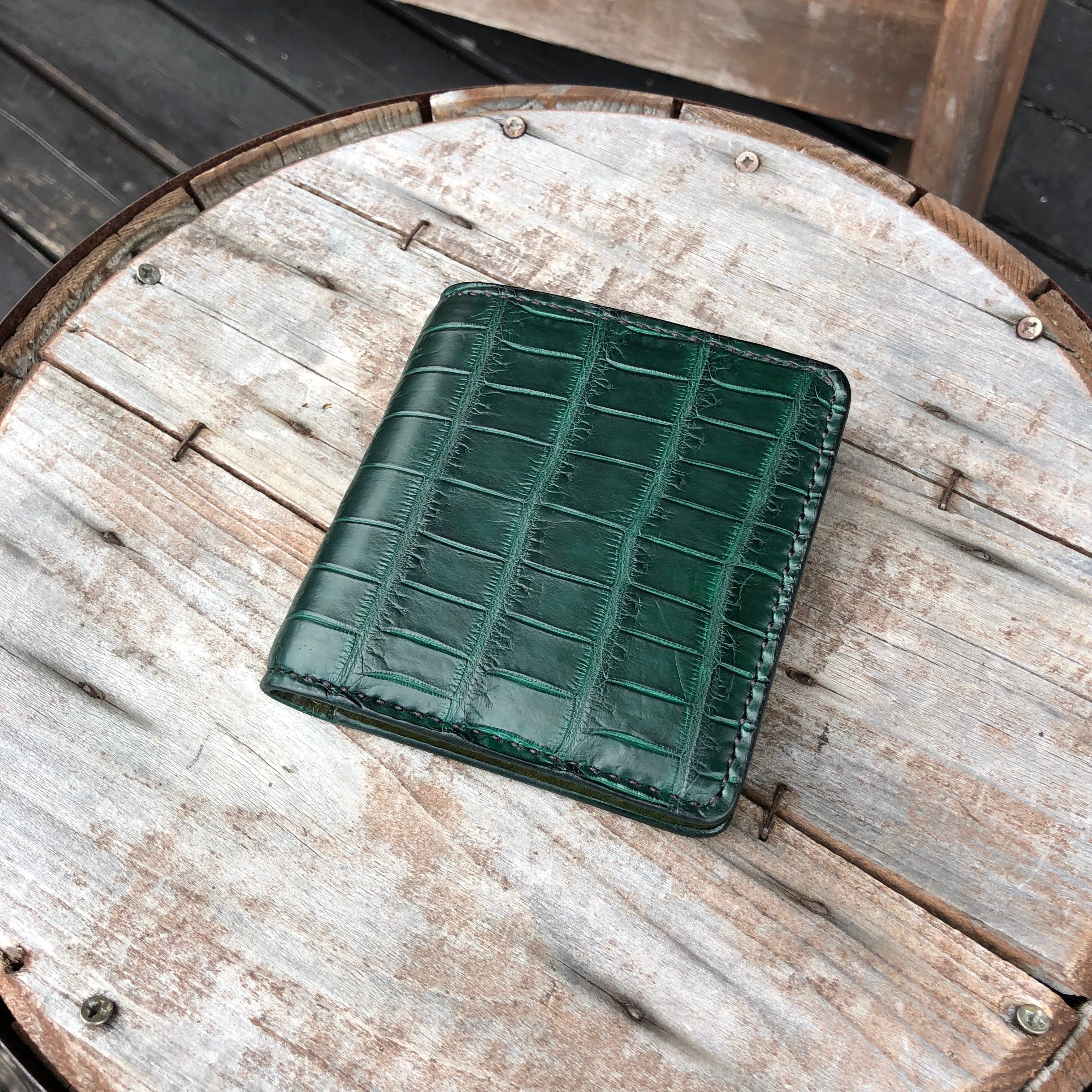 WHOLオリジナル ビルフォードM ナイルクロコテール ※ハンドメイド 財布 手縫い 本革 牛革 ウォレット ワニ 二つ折り財布 グリーン