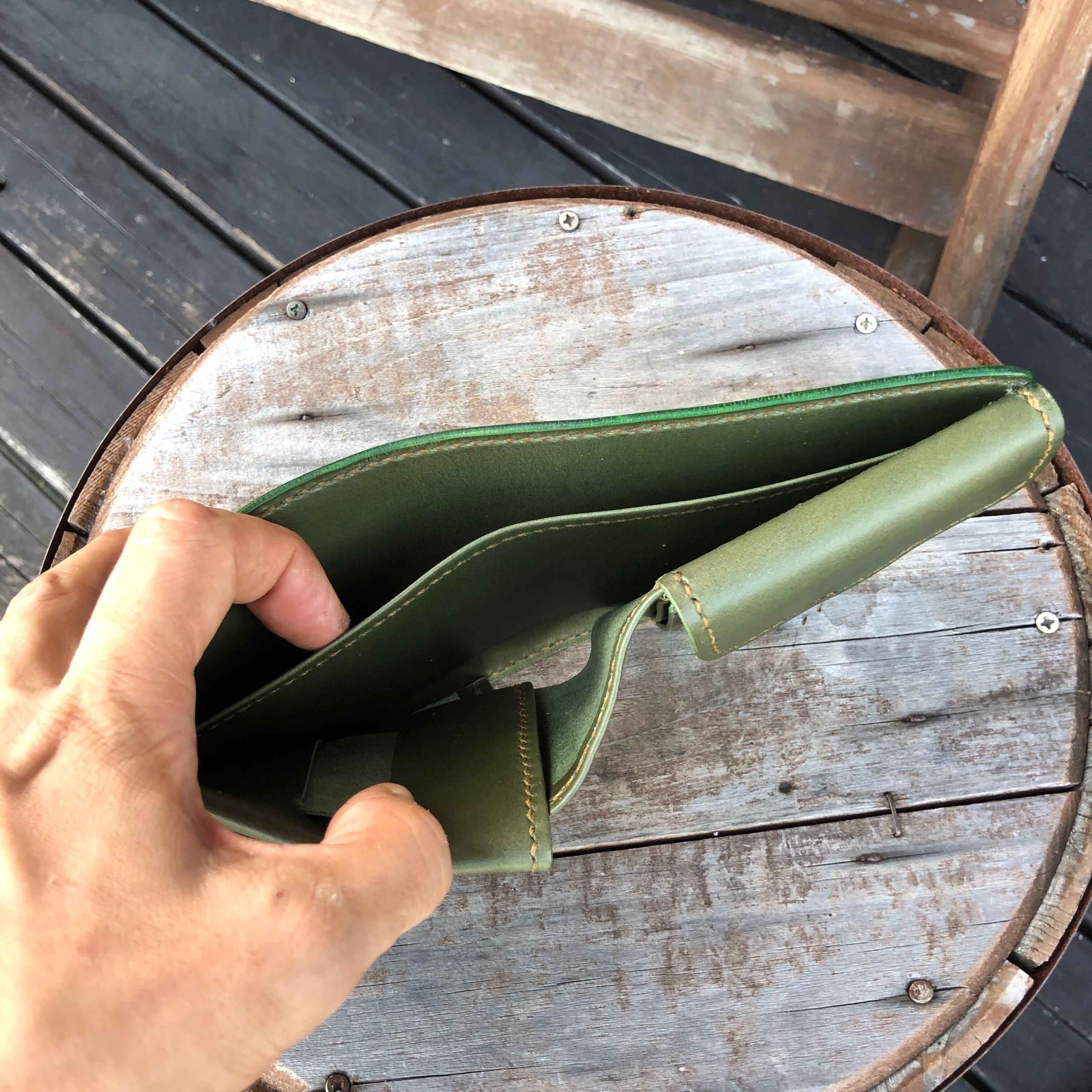 WHOLオリジナル ビルフォードL グリーン ※ ハンドメイド 財布 ウォレット 本革 手縫い 牛革 二つ折り財布 レザーウォレット