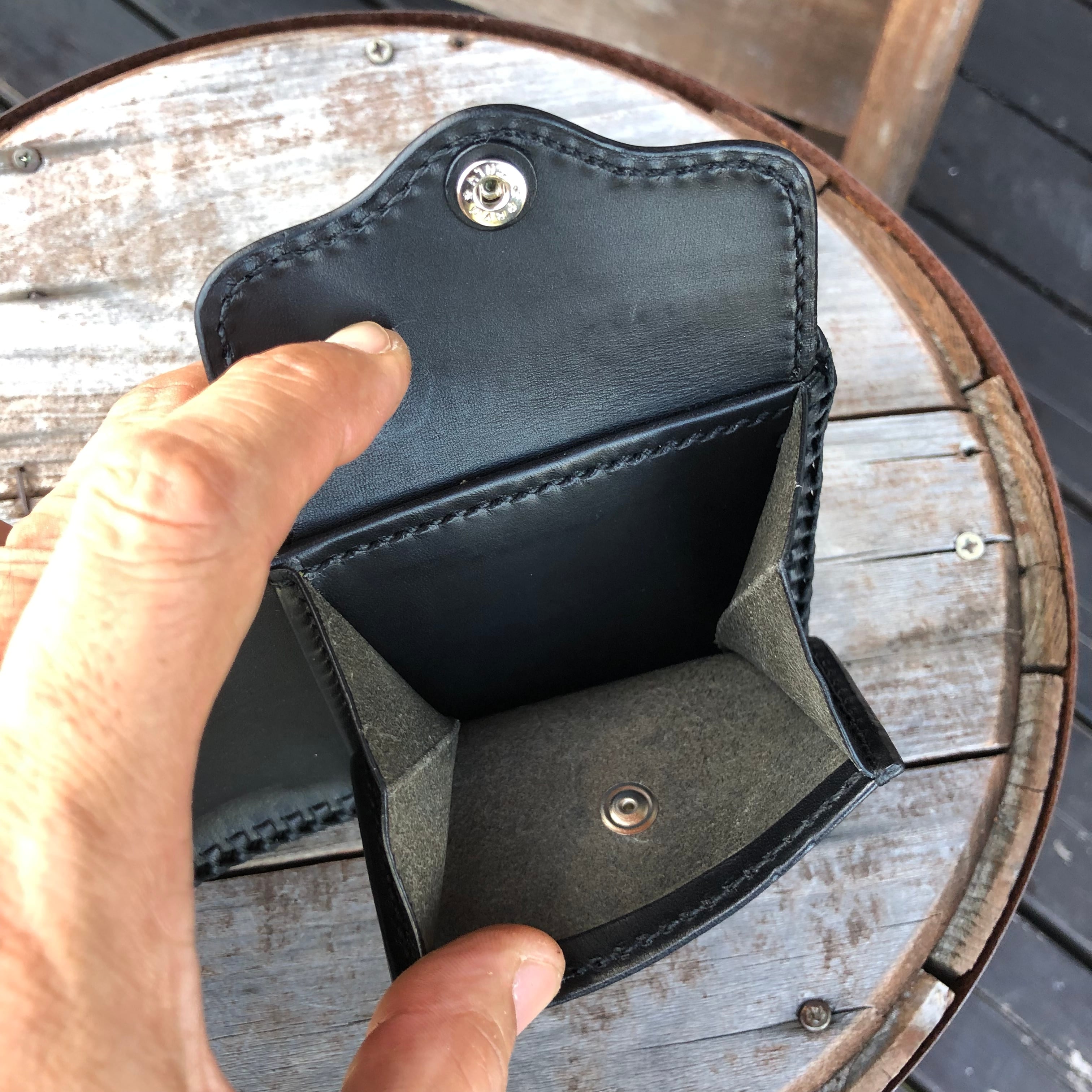 中パーツの革を薄くすることで使いやすさを追求し、なおかつ強度を持たせるために口部分に返し縫を施してます。