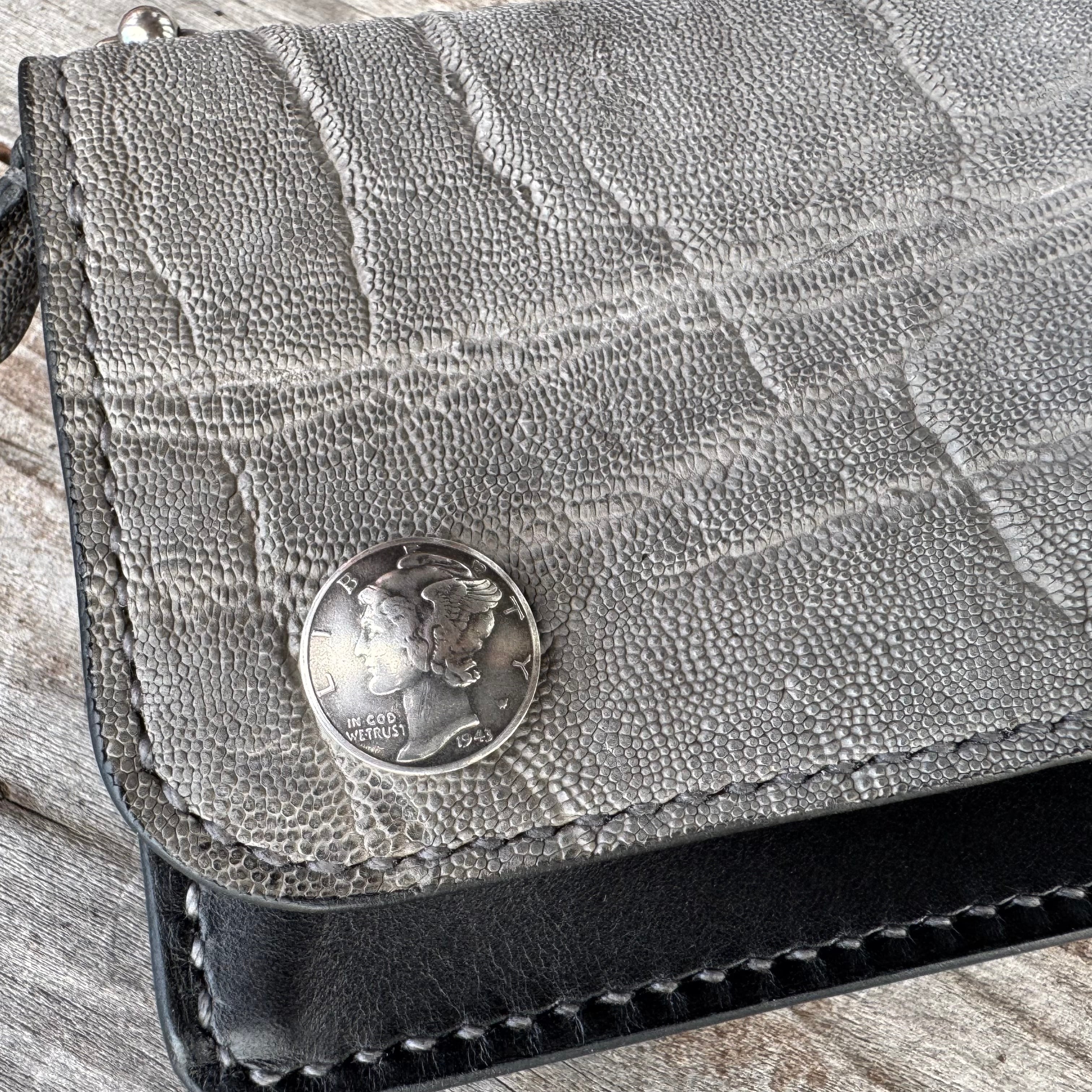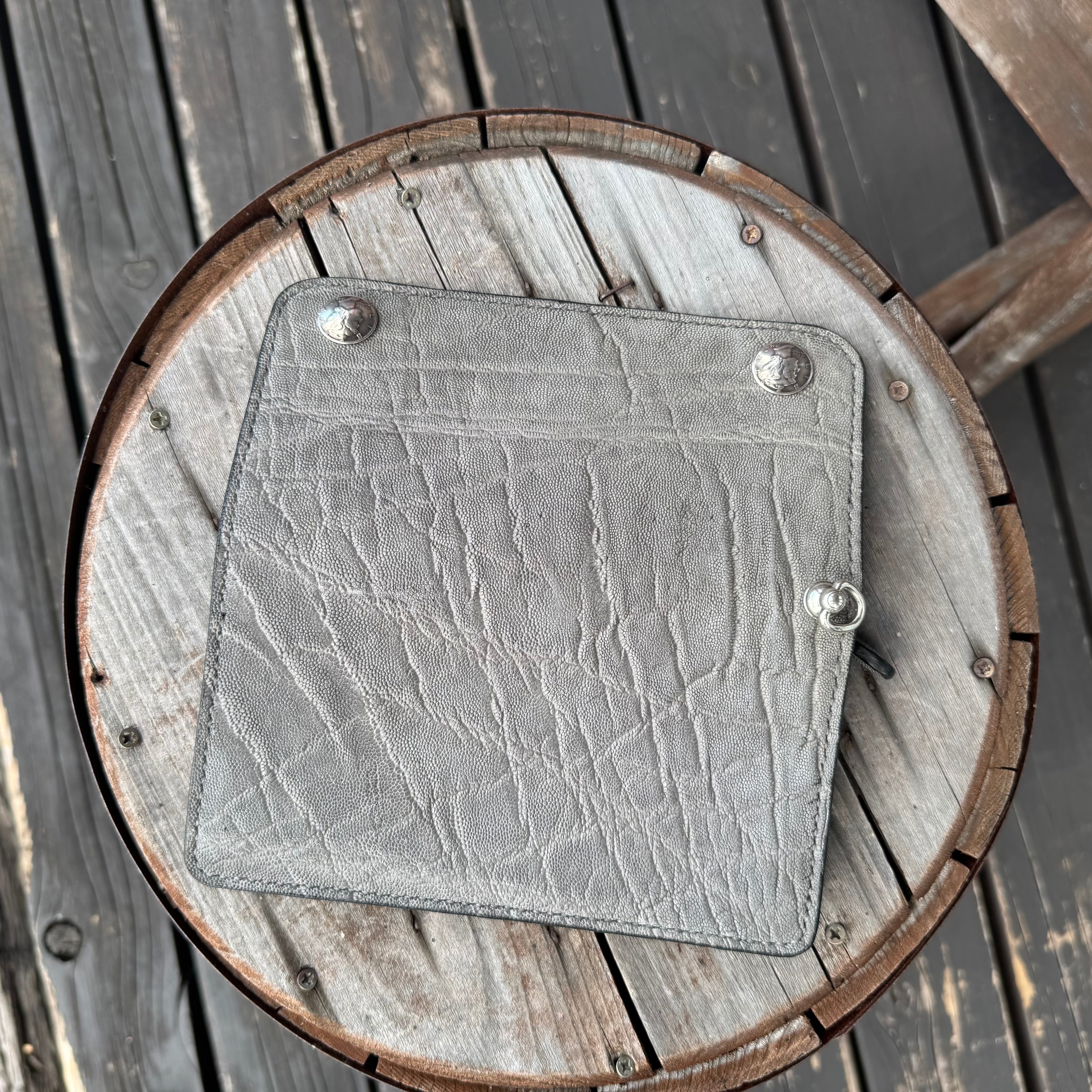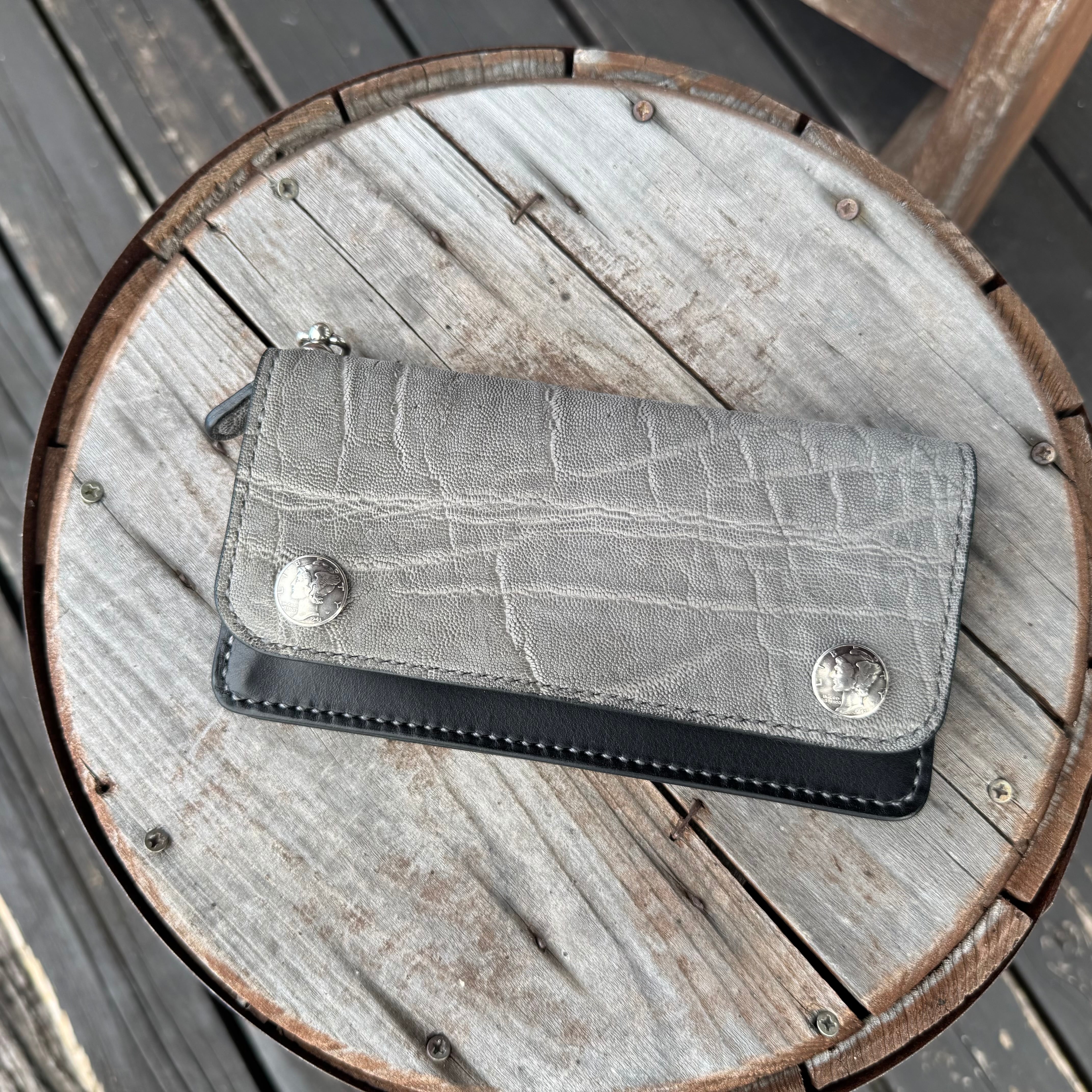 WHOLオリジナル エレファントトラッカーズウォレット ハンドメイド 財布 本革 象革 手縫い 牛革 ブラック レザーウォレット