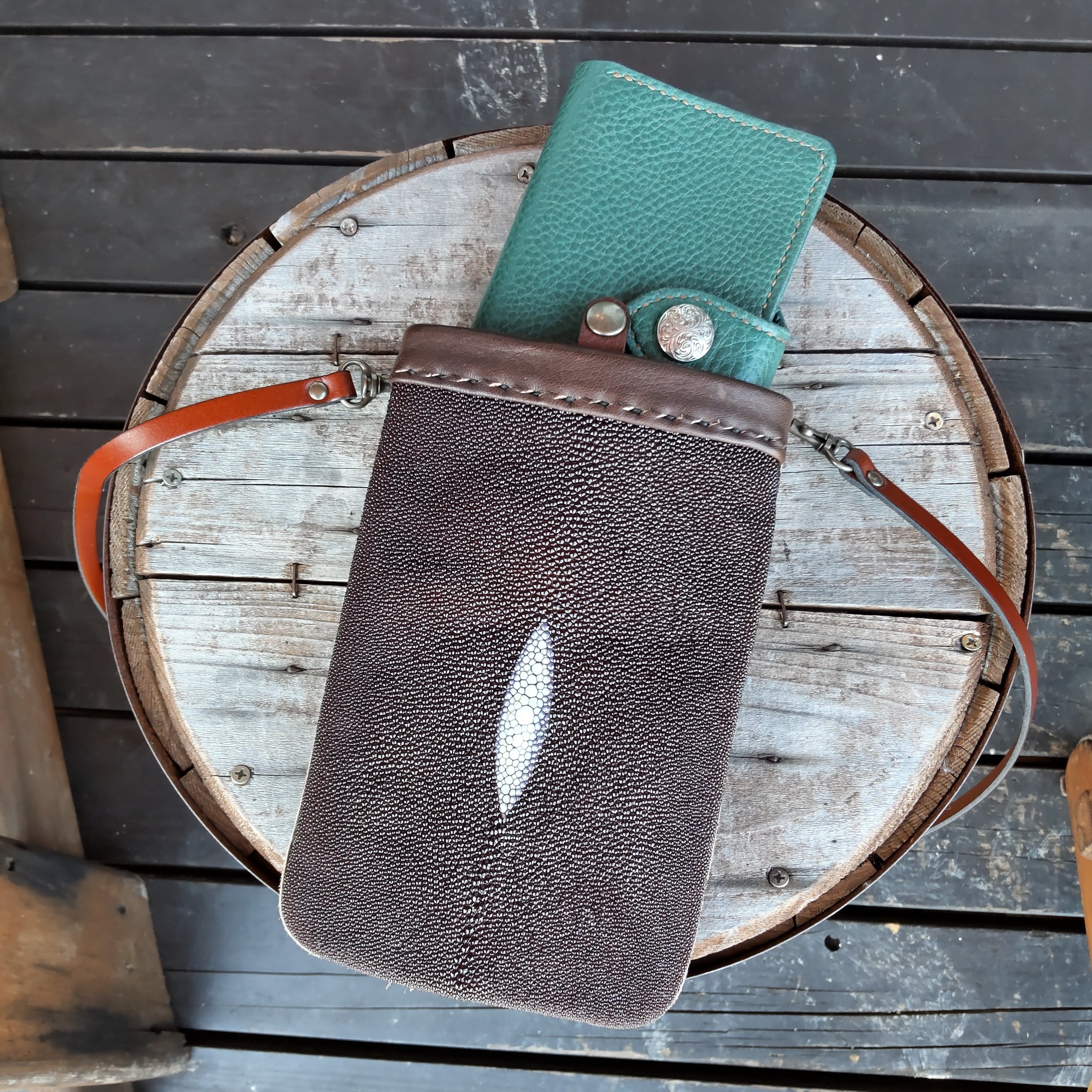 レザークラフトWHOL社オリジナルのスティングレイスマホポーチです。