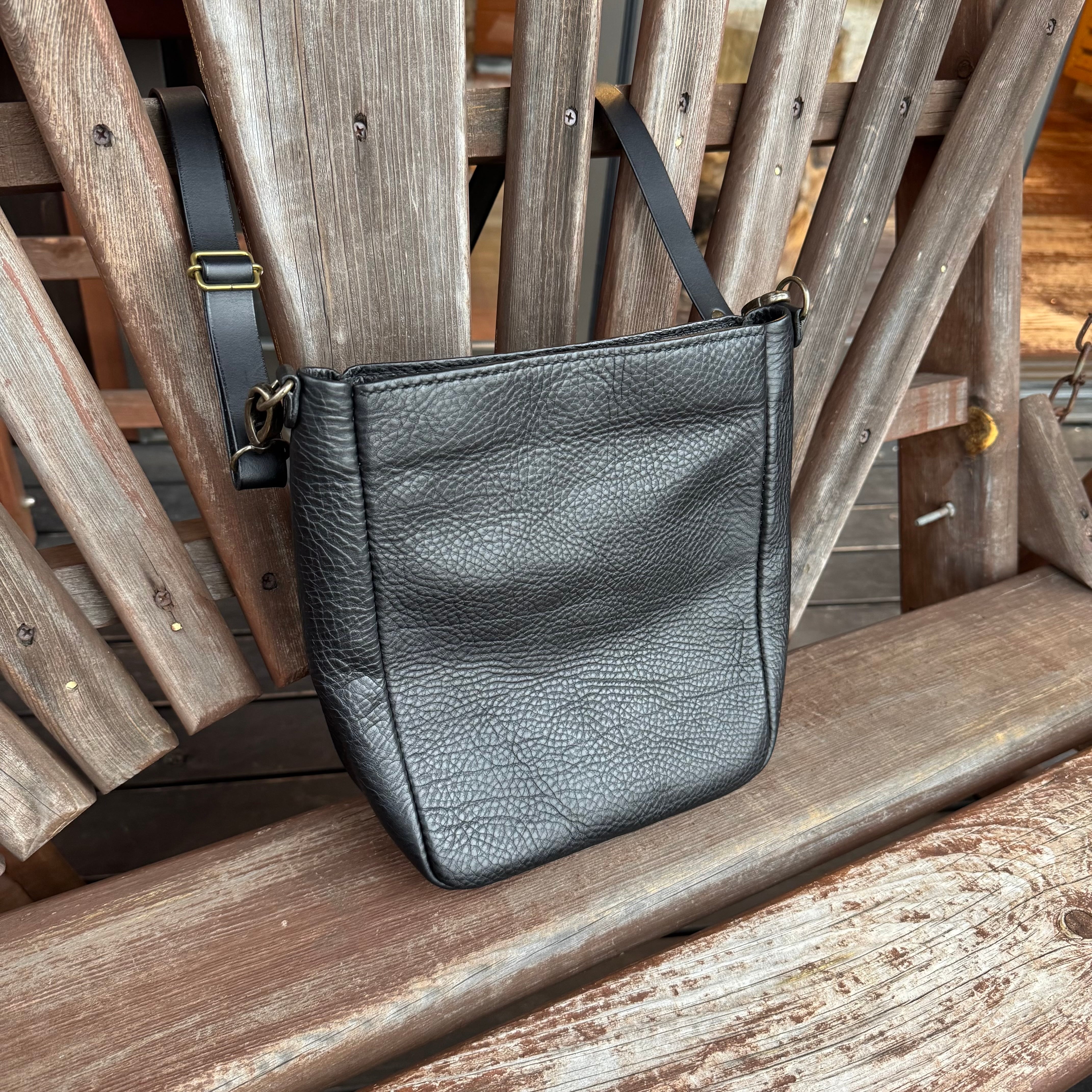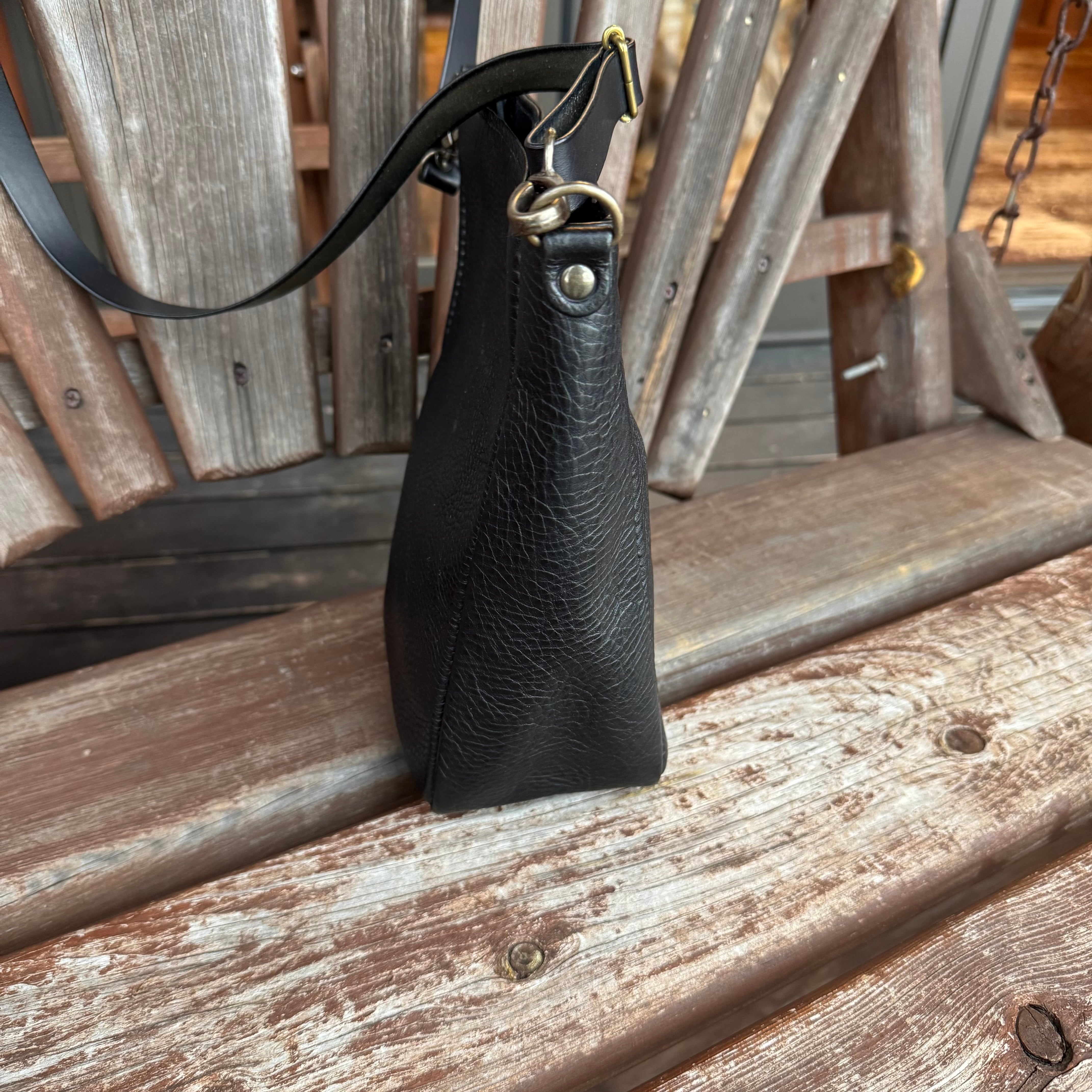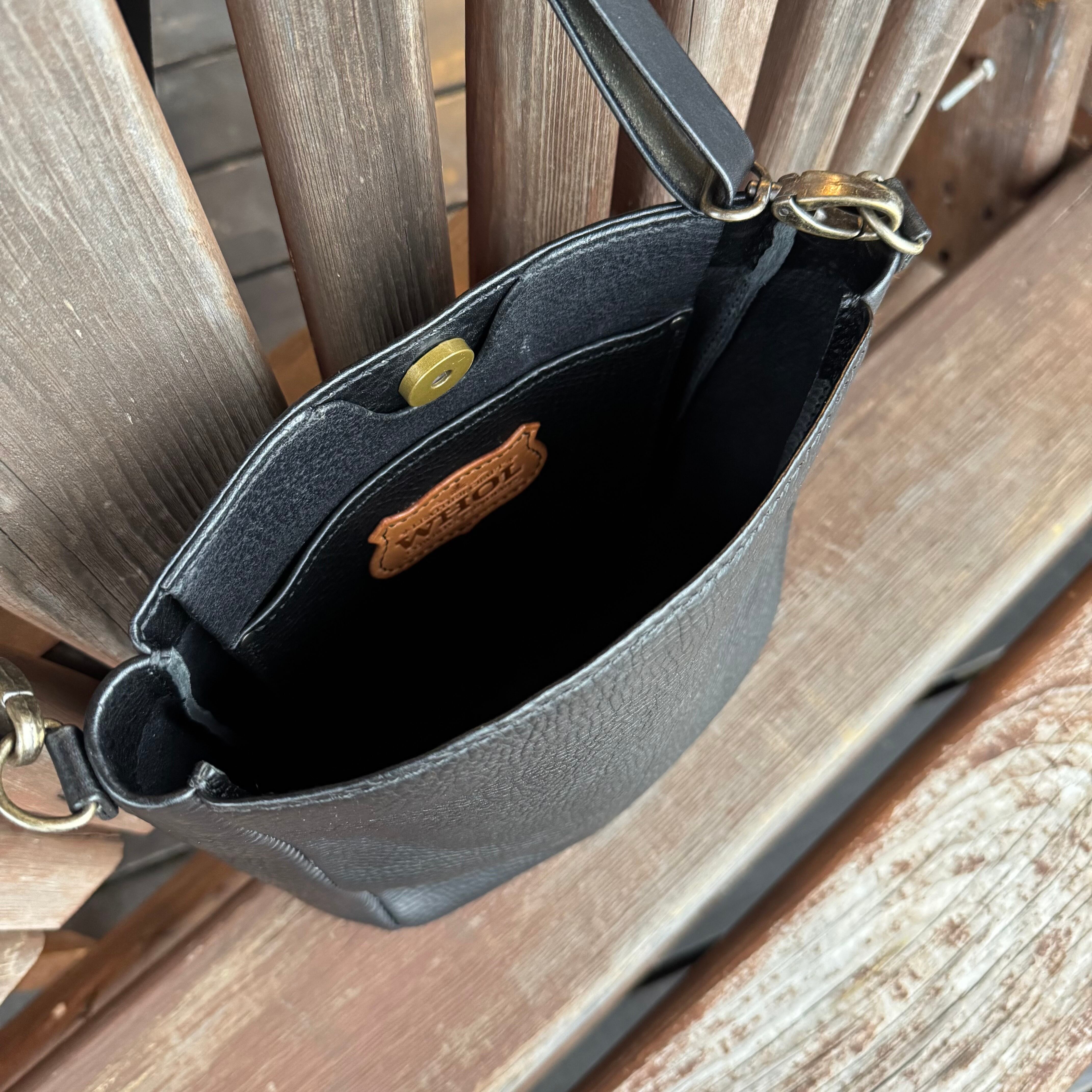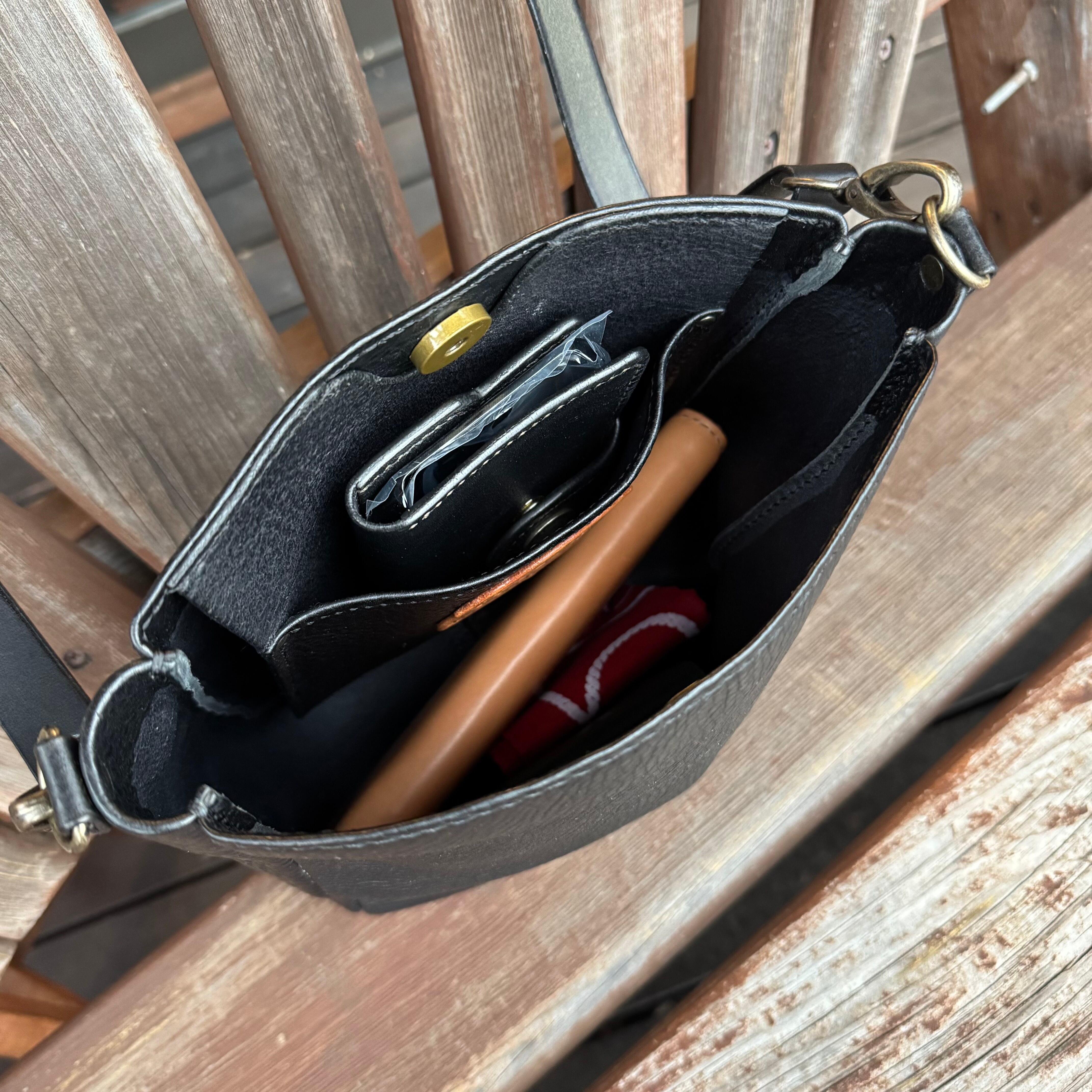 WHOLオリジナル ショルダーバッグ 肩ひも付き ハンドメイド 手縫い 本革 牛革 斜め掛け ブラック